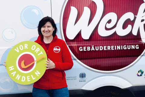 Die Redensart „aus Kindern werden Leute“ passt auch zum Unternehmen „Weck macht sauber“: Als Lydia Weck 2006 mit ihrem 3-jährigen Sohn nach Kalchreuth zog und sich selbständig machte, hätte sie sich noch nicht vorstellen können, 15 Jahre später in Eckental eine Firma mit 48 Mitarbeitern zu leiten. Ihr Sohn ist heute erwachsen und absolviert hier eine Ausbildung als Kaufmann für Büromanagement.